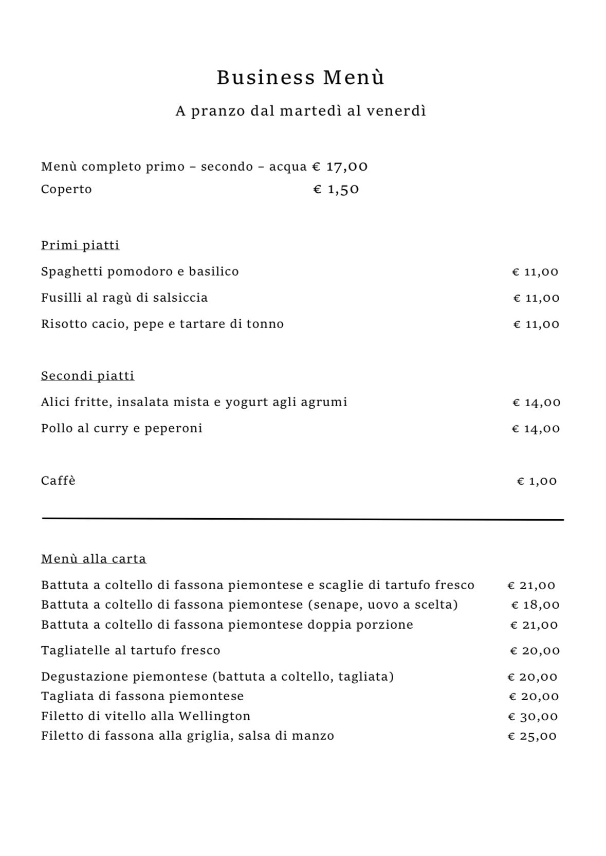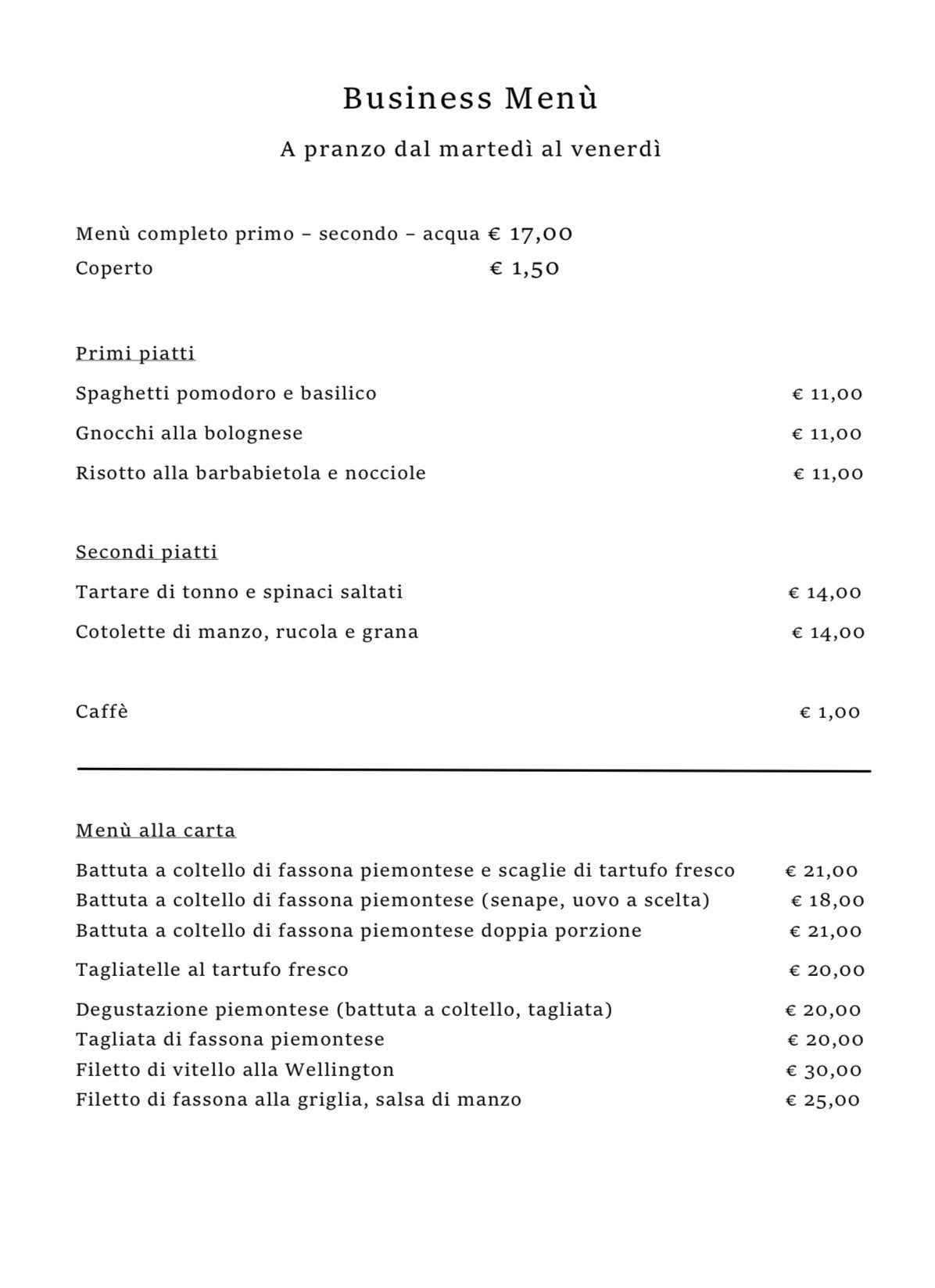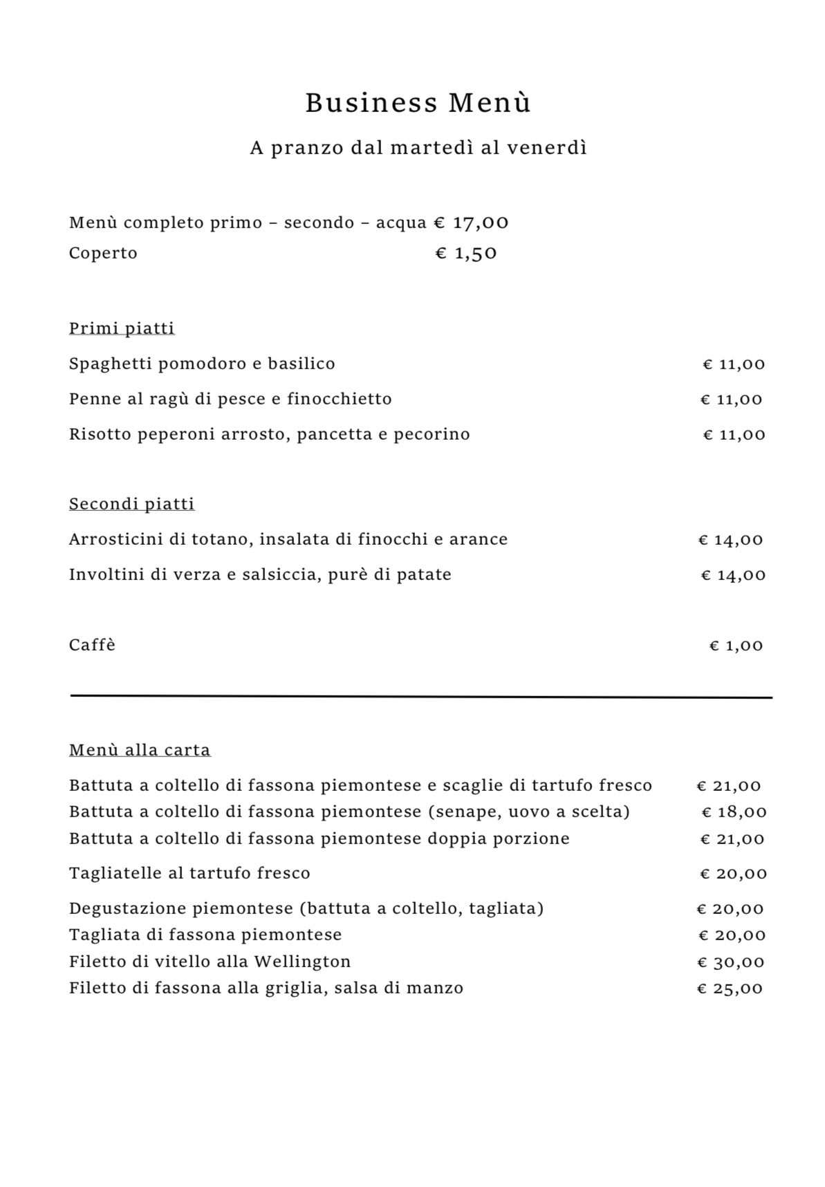 MENù ALLA CARTA