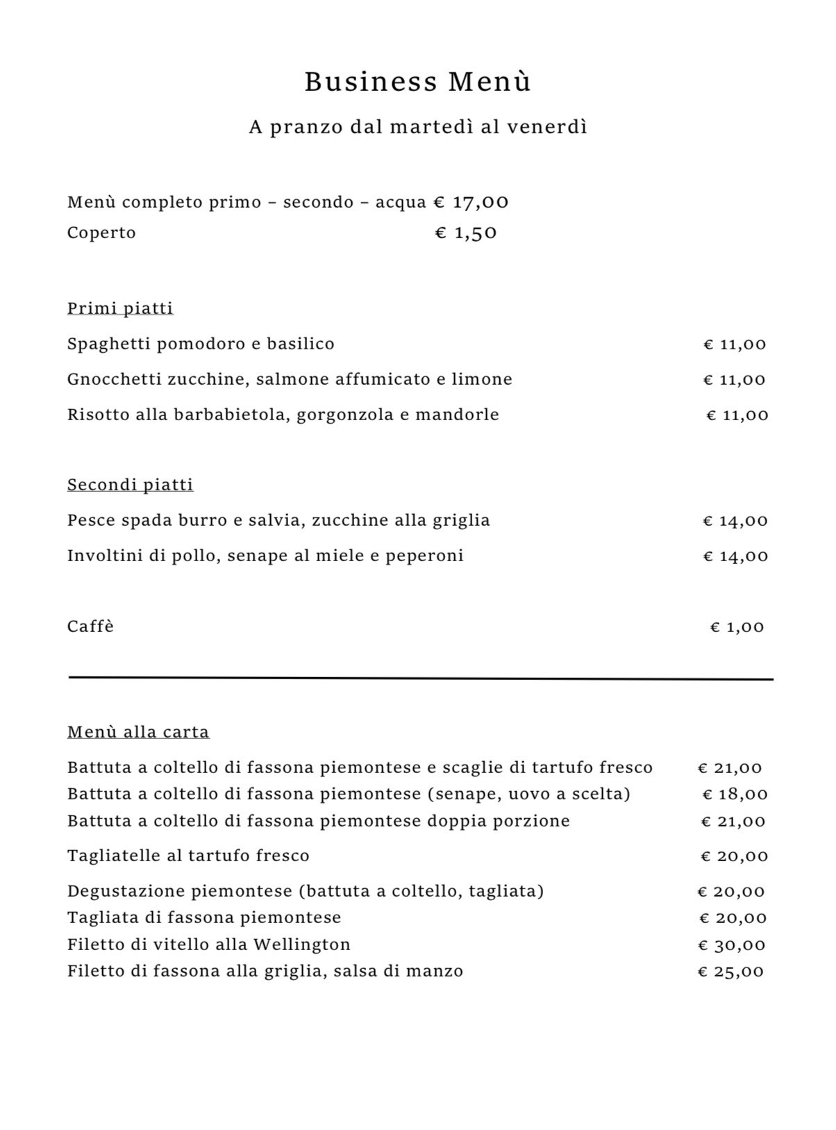MENù ALLA CARTA